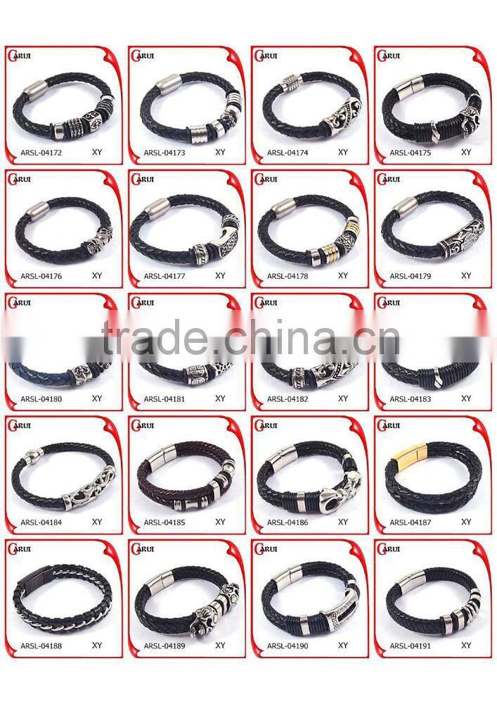 wholesale leather engravable bracelets with pendant mens leather bracelet |