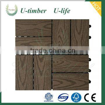 U-Timber Waterproof and environmental wpc diy tile decking is suitable for all outdoor decoration, like your terrace, balcony, garden, park, walkways, pools, seaside dock which with the advantages of wood and plastic, saving forest resource, reducing repetitive and wasteful maintenance, decreasing the cost that spend on repair.