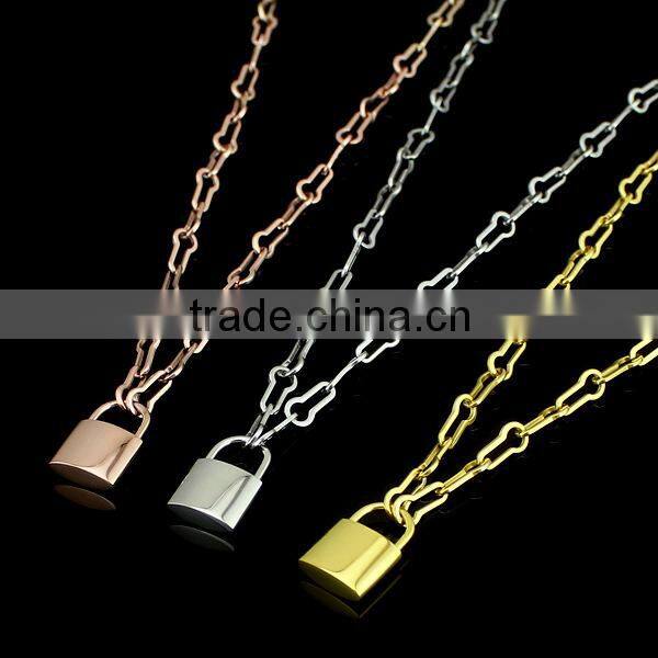 Fashion europe luxury long 316L stainless steel lock necklaces |