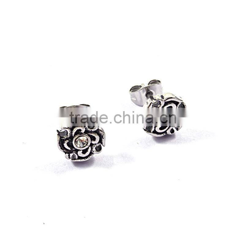 Black Stainless Steel Women Jewelry Flower Stud Earrings