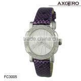 Fashionable Color Crystal Watch Leather Strap Purple Wrist Watch Ladies