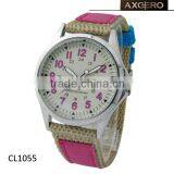 2015 Women Watches Fashion Quartz Nylon Canvas Leather Watch Colorful Girls Ladies Wristwatch