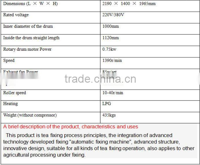 ,crank up operations applicable to all types of tea, also applies to other agricultural products processing.