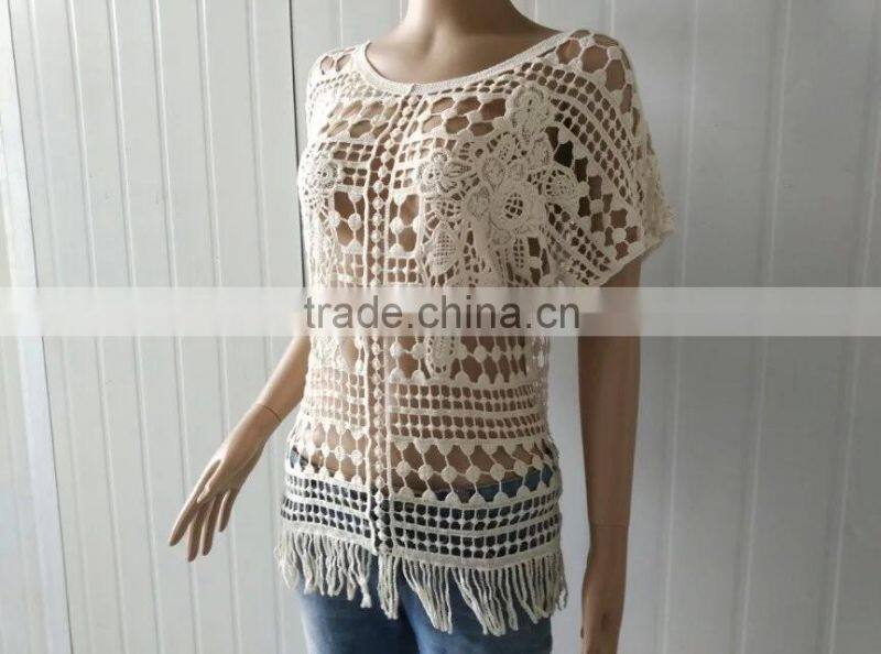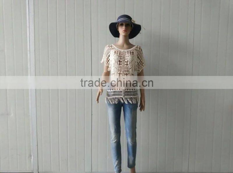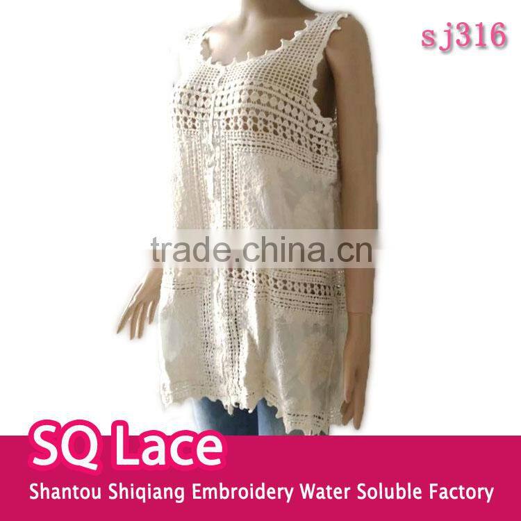 Summer Tops Hot Cotton Embroidery Lace Fabric Vest for Women T-shirt