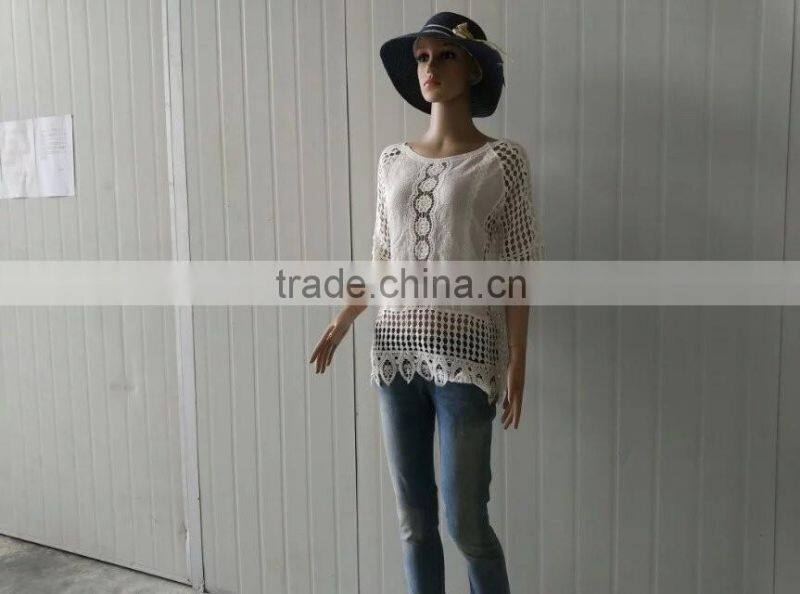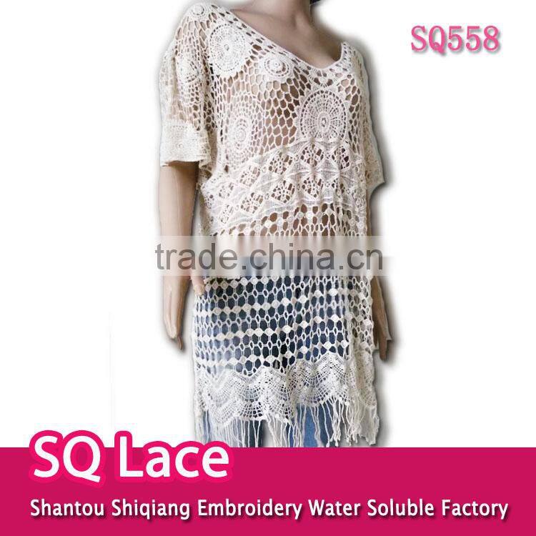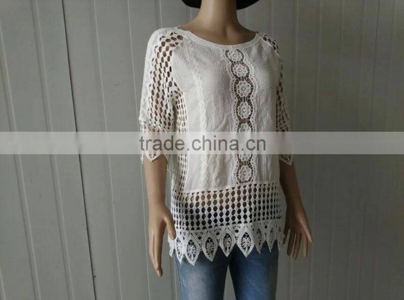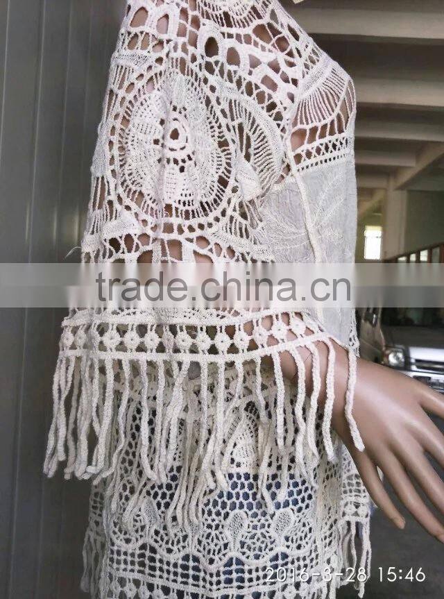 2016 Ladies Tops Hot/embroidery Lace Sleeve Jacket Cotton Lace Fabric Hollow Out Vest