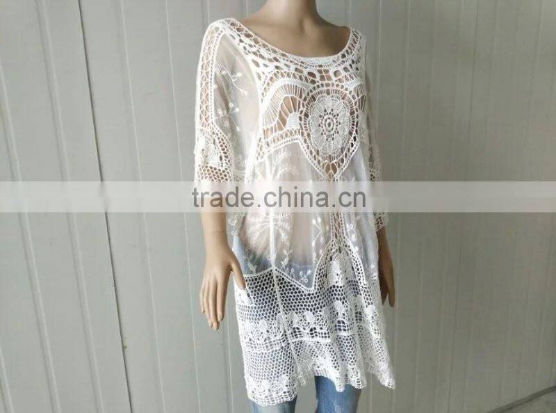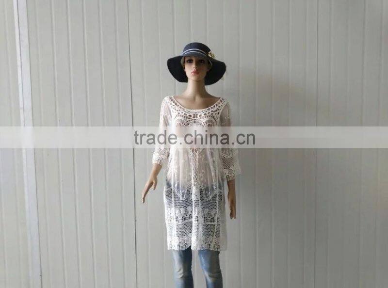 2016 Summer Lace Tops Hot Cotton Lace Fabric Long Sleeve Lace Dress