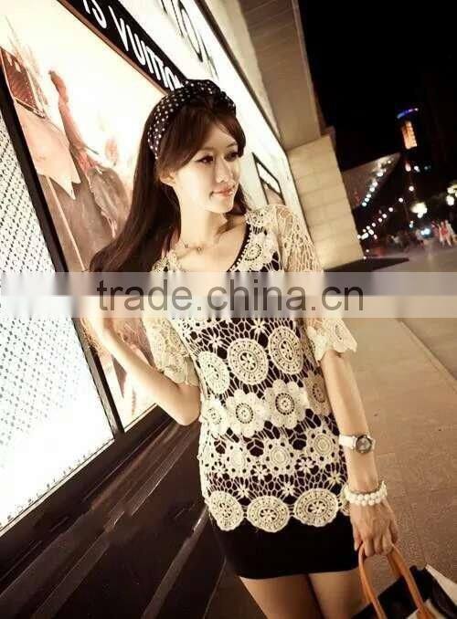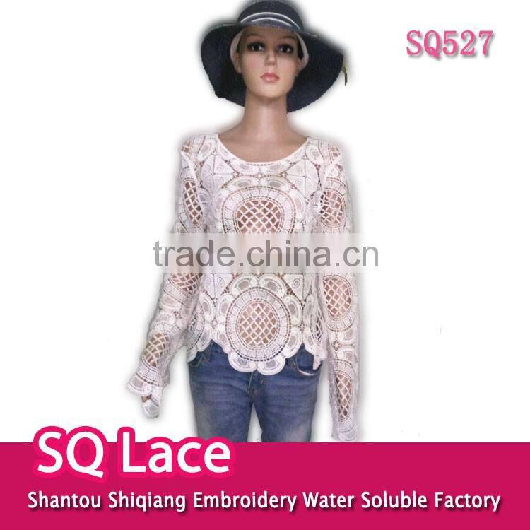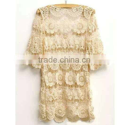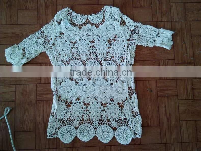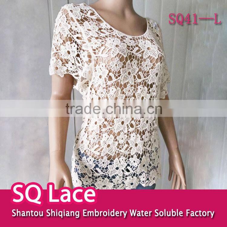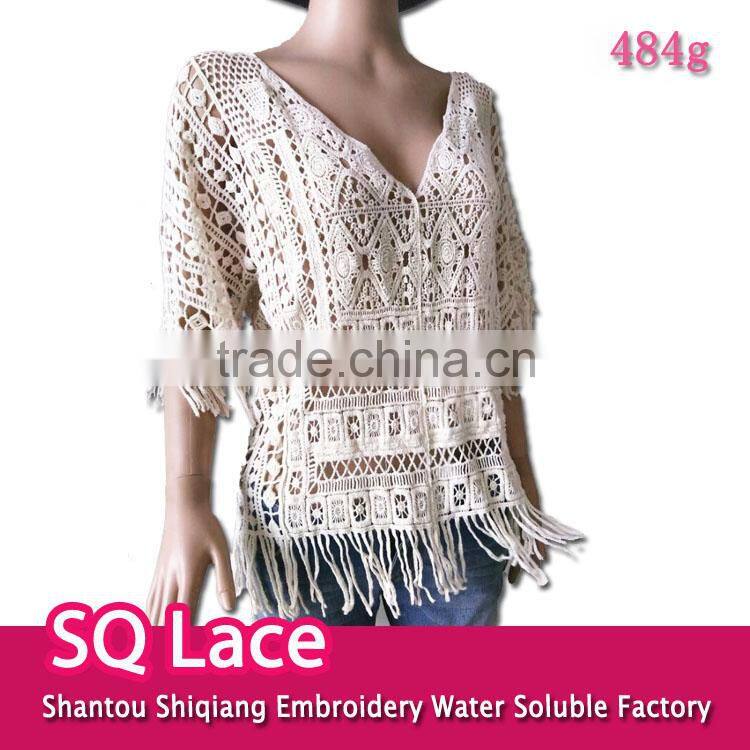 Ladies TOPS Hot Cotton Embroidery Lace Fabric Vest for Women Three Quarter Sleeve