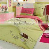 Embroidery Travel Bedding Cotton Child Duvet Cover Bed Set 205TC In Green Color