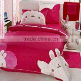Embroider Rabbit Bedding Cotton Child Duvet Cover Bed Set 205TC In Red Color