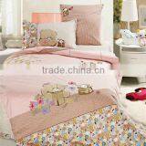Embroider Bear Bedding Cotton Child Duvet Cover Bed Set 205TC In Pink Color