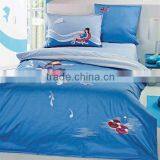 Reactive Dye Embroider Bulding Bedding Cotton Child Duvet Cover Bed Set 205TC In Blue Color