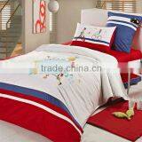 Embroider Boat Bedding Cotton Child Duvet Cover Bed Set 205TC In Blue Color
