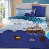 Reactive Dye Boat Print Bedding Cotton Child Duvet Cover Bed Set 205TC In Blue Color