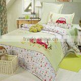 Embroider Car Bedding Cotton Child Duvet Cover Bed Set 205TC In Green Color