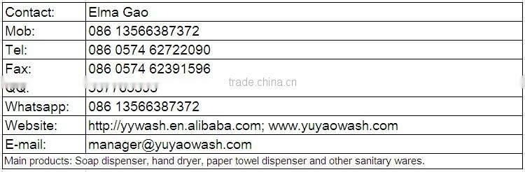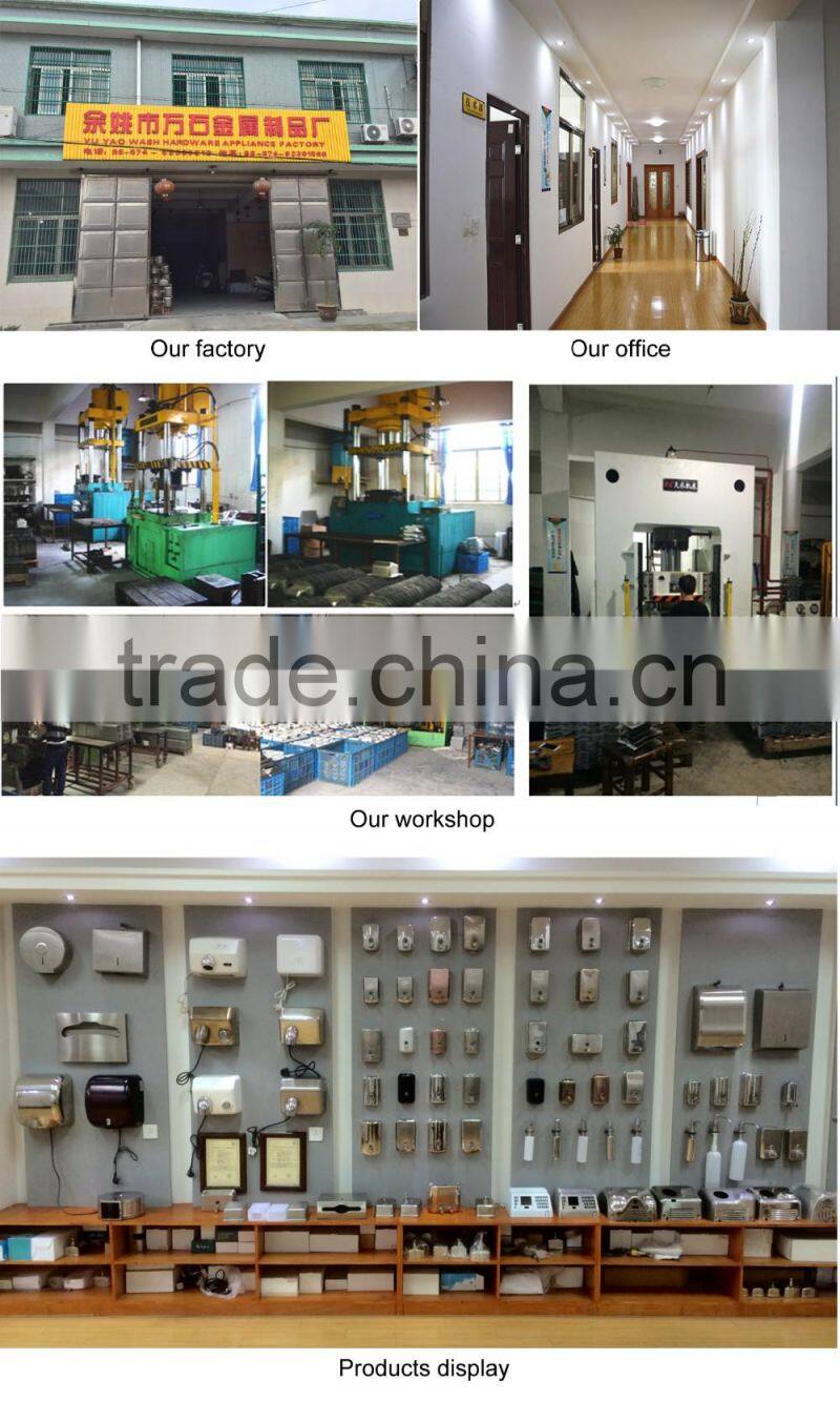 Established in 2001, Yuyao Wash Hardware Appliance Factory is a professional large-scale manufacturer of soap dispenser, hand dryer, paper dispenser and other sanitary wares. As the world’s biggest supplier of stainless steel soap dispenser, we focus on research, development and continuous improvement of production technology. Now we have over 120 models of soap dispensers, including liquid one and foam one. Annual production capability is over 200 thousand units. Currently, Yuyao Wash is already exported to America, Russia, Turkey, India and over 20 other countries and regions. We regard “reasonable price, efficient production time and good after-sales service” as our tenet. Welcome to contact us for any requirements.