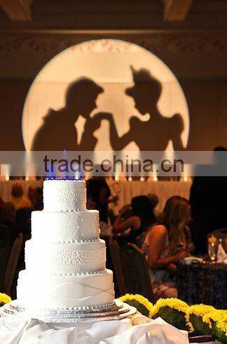 Our gobo projector features sharp projection of logos, images or texts on the wall, ground or other surfaces. It is a wonderful way to advertise your new ideas, products or promotional campaigns.