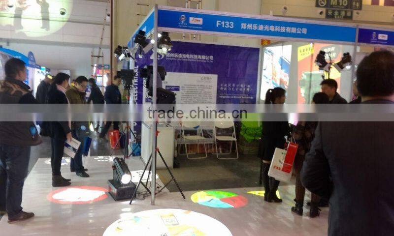 A: Single gobo projector can project one logo; We also provide four ,six , eight gobos projector .theycan project logos on wall, floor and ceiling by turn with time controling.