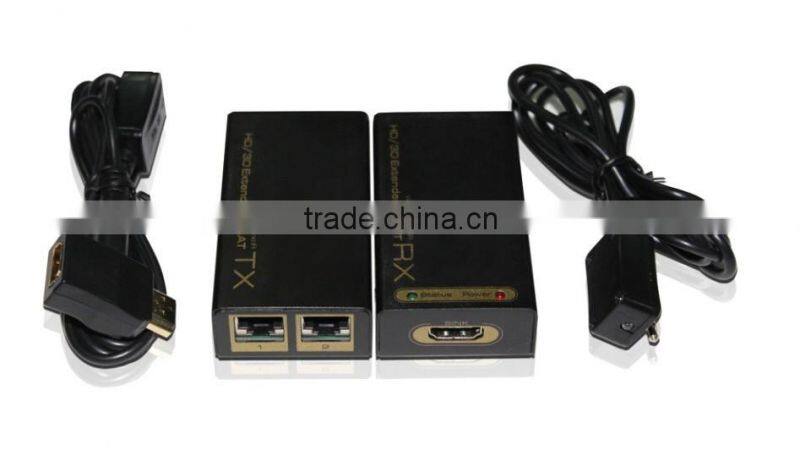 The HDMICAT30RX&TX Extender use double cat-5E or cat-6(recommended) cables up to 60 meters instead of HDMI cable to transmit high definition signal, for cutting down cost. Long distance transmission of high definition is very difficult because HDMI cable is very expensive and infrequent. The Extender is designed to supply for long distance transmission of high definition signal.