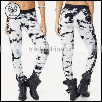Autumn Ladies Black and White Tie Dye Slim Tight Legging for Women