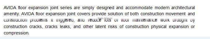 ADGP-1 is floor to floor metal expansion joint cover. Ideal for stone, concrete, tile, granite, cement, carpet, vinyl and other floor finishes. Grooved safety anodized metal surface. Compared with rubber ones, it enjoys longer performance and lower maintenance costs. Recessed installation type. Aluminum base shows outside. Fire barrier is optional.