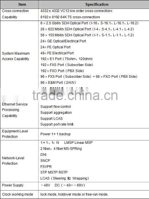 SDH cross-connection, PCM 64K TS cross-connection, supports 2.5G/622M/155M multiple