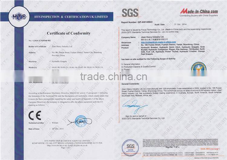 Our company is the professional manufacturer of hydraulic breaker, quick hitch, hydraulic compactor, ripper, grab bucket, hydraulic log/rock grapple for excavator, etc. Our products can be used for Komatsu,Hitachi, Kobelco, Kato, Sumitomo, Hyundai, Volvo excavator, etc. We are looking forward to having a good cooperation with you.