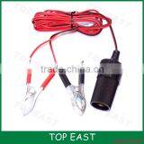 12V/24V Cigarette Lighter Socket With Alligator Clips Cables Have Fuse - Black + Red