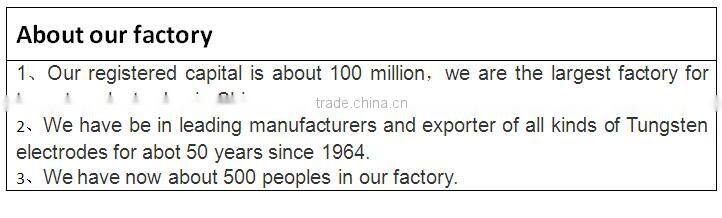 We are the largest factory for manufacture tungsten electrodes and welding rods.Beijing brand Zirconiated tungsten electrodes for welding from Beijing