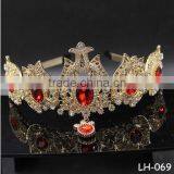 Top Quality Handmade Bridal Hair Accessories Luxury Red Crystal Crown Big Crowns