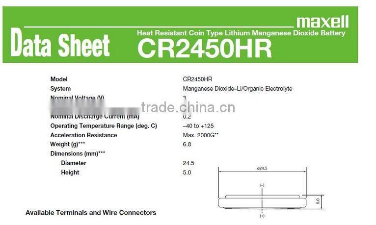 MAXELL CR2450HR Battery Coin Cell 3V Button Cell With Solder Pins