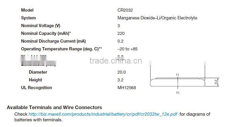 Original maxell 3v primary coin cell lithium Manganese dioxide battery CR2032