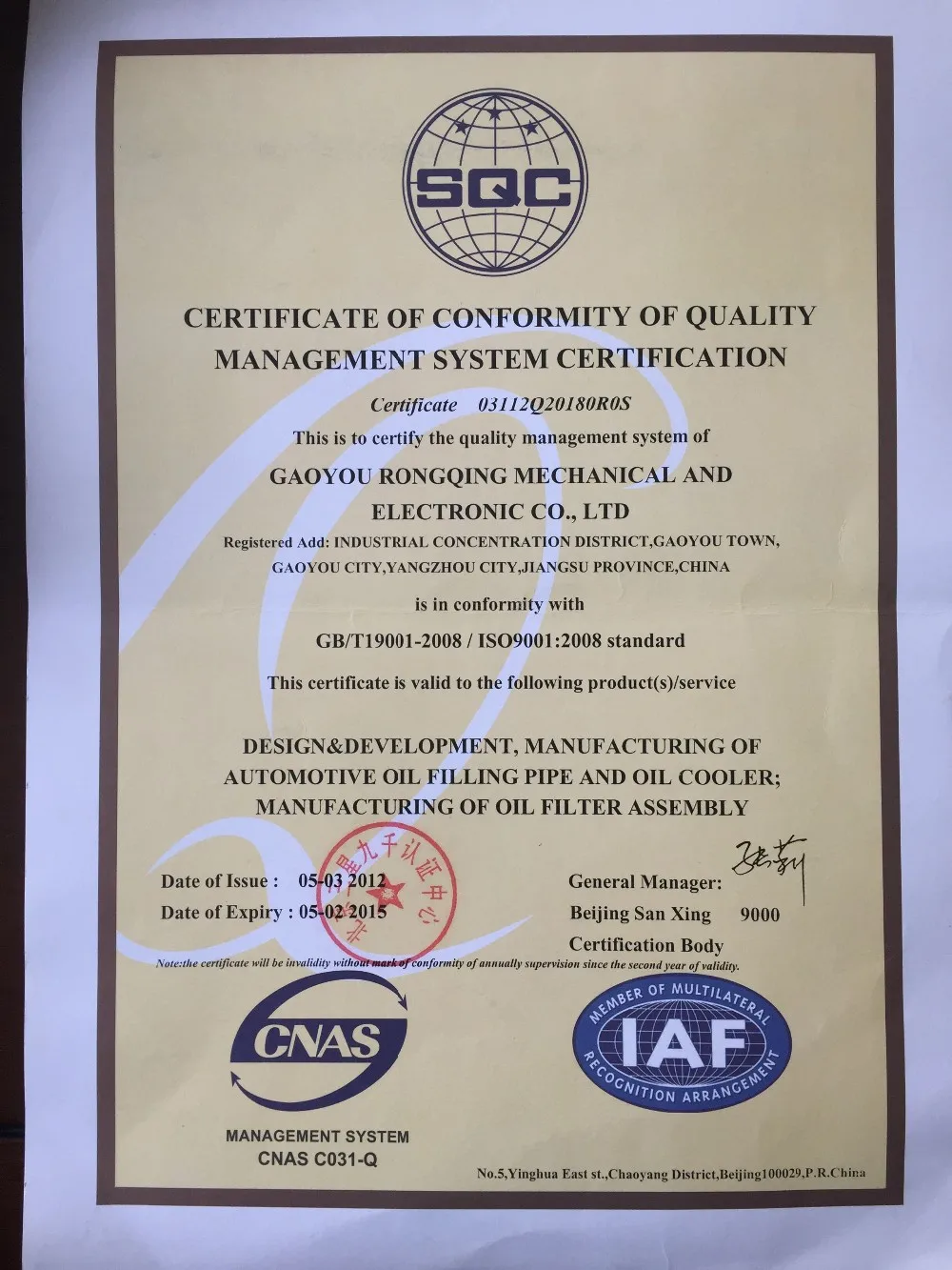 Quality Standard: TS16949 / ISO 9001