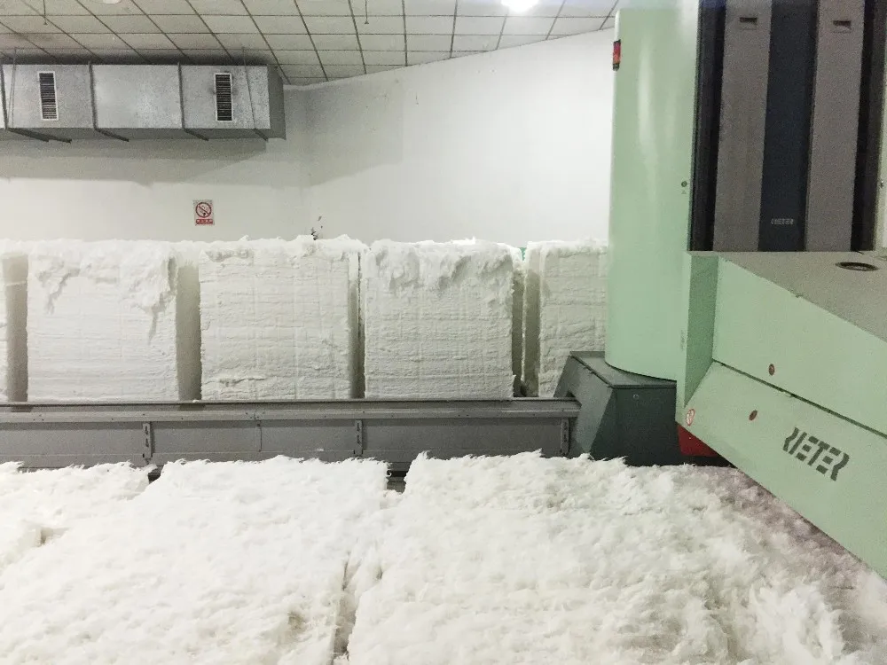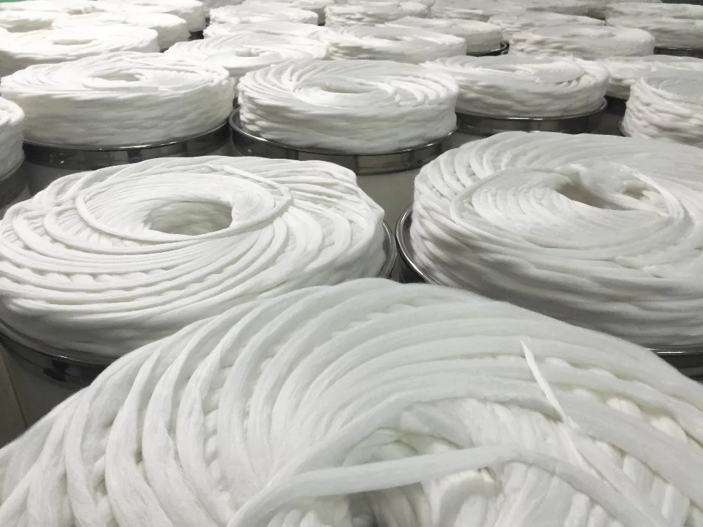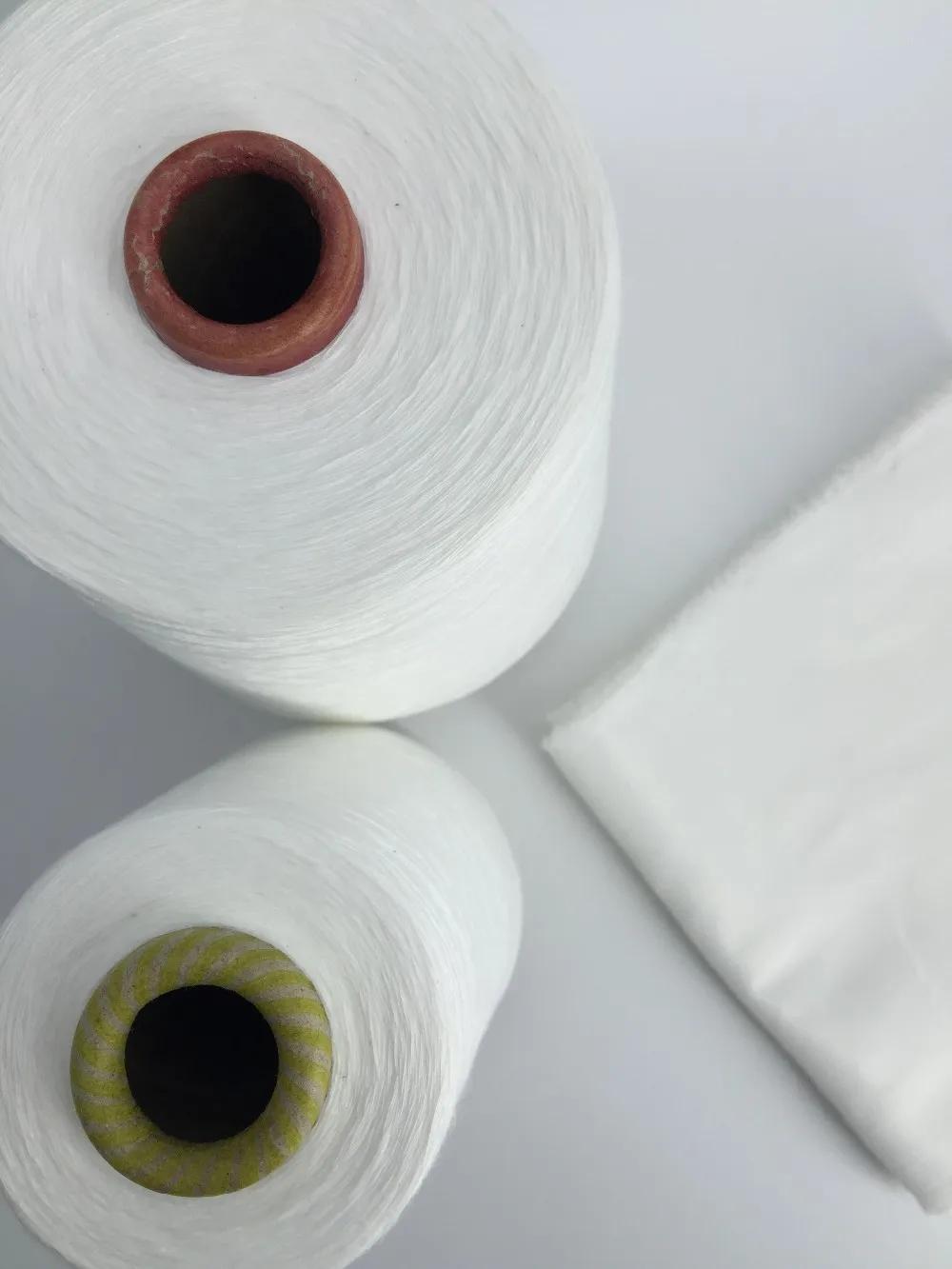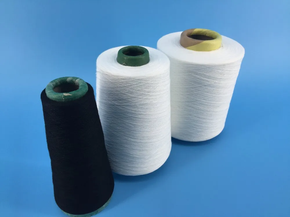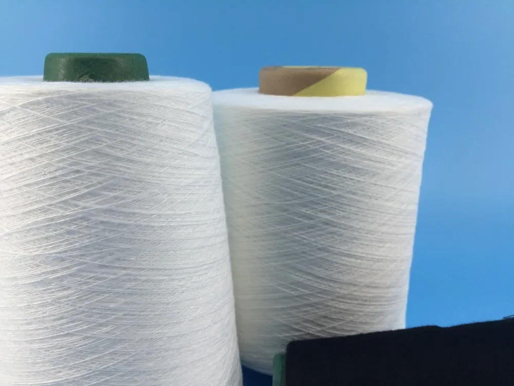 By using air in the high-speed rotation of spinning cup, the polyester fiber are made into twisted yarn, the process of yarn output is quite short and high yield, also with high strength and evenness.