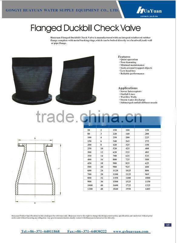 This valve is a special product ,and it is used for draining sewage .In many foreign countries,such as Spain , America,it is usually named as duckmouth-shaped valve .We are doing our best to make this valve more practical and more perfect .The valve can be matched with steel pipe ,cement pipe .At the same time ,they may be widely used on the coast,seasands,reservoirs,and so on.In order to dispose the sewage or to dredge the floods.