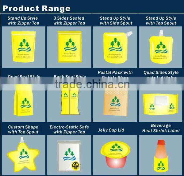 - zipper bags, stand up bags, bottom gusset bags, back sealed bags