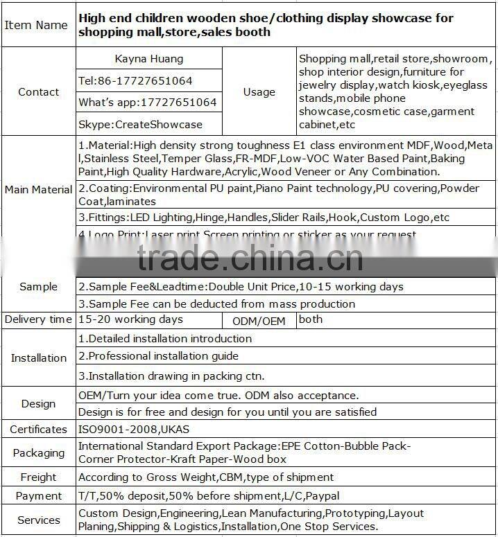 High End Children Wooden Shoe/clothing Display Showcase for Shopping Mall,store,sales Booth