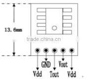 SOP8-Q Pressure Sensor is consists of SOP8 packaged pressure sensor and signal conditioning circuit. The pressure sensor systems mounted on a 11.6*13.6mm FR4 PCB. The SOP8-Q Pressure Sensor has the features of the small form factor and high reliability. The pressure range of the sensor cell is 0~2000KPa absolute pressure. The supply voltage is 5 ± 0.5V,the type supply current is 2.0mA, the output is 0~5V.
