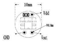 SOP8-R Pressure Sensor is consists of SOP8 packaged pressure sensor and signal conditioning circuit. The pressure sensor systems mounted on a Φ=10mm FR4 PCB. The SOP8-R Pressure Sensor has the features of the small form factor and high reliability. The pressure range of the sensor cell is 0~2000KPa absolute pressure. The supply voltage is 5 ± 0.5V,the type supply current is 2.0mA, the output is 0~5V.