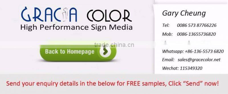 Grace Color a reliable supplier specializing in outdoor and indoor sign material. Our products includes PVC Banner series ( frontlit banner, blockout banner, backlit flex, PVC coated banner, PVC coated mesh banner, etc.) and Adhesive Vinyl series ( Self adhesive vinyl, perforated film, cold lamination film, vehicle wrapping film, color vinyl, etc.). We have established solid business cooperation with customers from South and North America, Eastern Europe, South-east Asia, Middle East, Africa, etc..