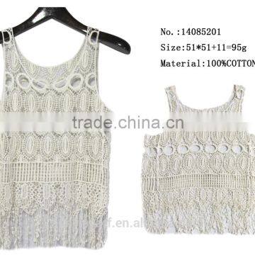 sexy girls lace tassel vest 100% cotton clothing wear wholesale in yiwu