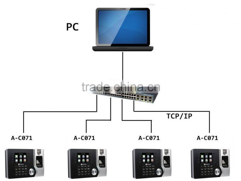 2) One software can connect to several A-C071, to share the user info and get the attendance records.