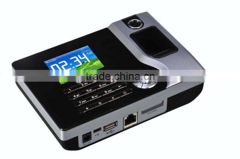 This time attendance terminal is with Western style, front case is acrylic and back case is with rubber paint process, it has artful and elegant feel, its hardware structure adopts structured design of industrial grade. It is with ourselves fingerprint arithmetic which is the most advanced one in the world, automatically analyze the tiny difference of the latest fingerprints vs. the previous fingerprints and update accordingly to ensure the high accuracy and the optimum speed of fingerprint recognition. High recognition ability for injured and peeled fingers, the identification time is less than 0.8 second. With ID card(optional for IC card) function, multi validation methods by card, fingerprint and password combination. User-define for message display and screen display. Standalone to operate the device, U flash drive could realize all kind of setting for the device directly. TCP/IP communication, network connection is simple and convenient. Support Push Technology, data collecting & sharing freely.