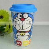 Double Walled Porcelain Cup Silicon Lid,300ml