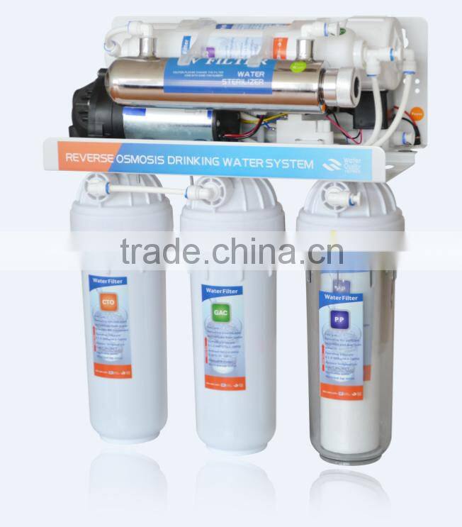 6 stage under sink RO water filter system Automatic Flushing with UV light