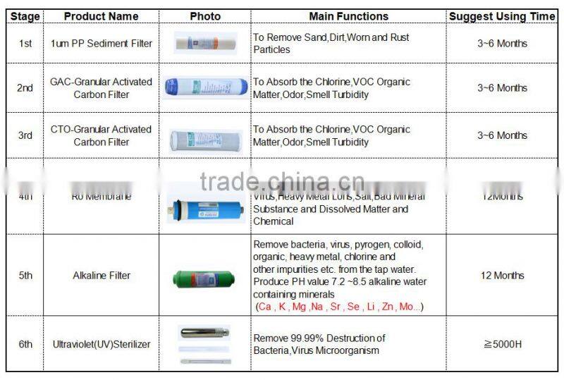 2016 China Best Cheaper Price 6 Stage Alkaline Water Filter System With uv Light