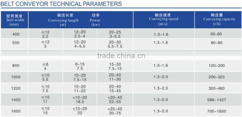 Technical data of High Quality Materials Conveying System Belt Conveyor