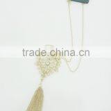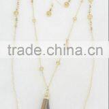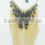 FACHION FACETED BEADED METAL CHAIN TASSEL NECKLACE EARRING SET