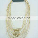 FACHION MULTI ROW WAX CORD NECKLACE WITH METAL TUBES MAGNET CLOSURE