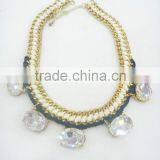 FACHION METAL CHAIN CORD BRAIDED BIG GLASS STONE NECKLACE