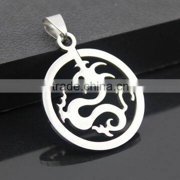 304 Stainless Steel Round Dragon Pendant Necklace